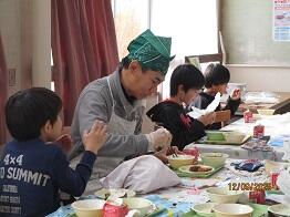そして、自分でおにぎりを作るというメニューなので、児童たちも真剣です。
