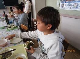 できたおにぎりは様々な形でしたが、皆おいしそうに頬ばっていて、満足気な様子でした。