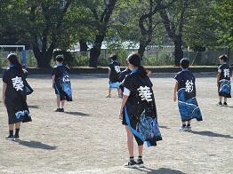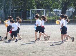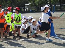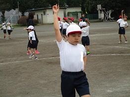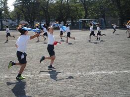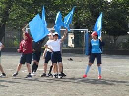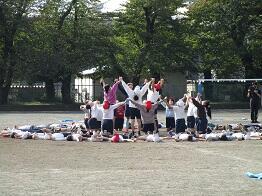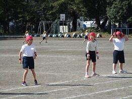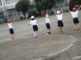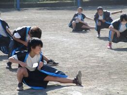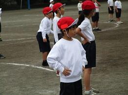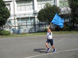 素晴らしい青空の下、校庭では運動会練習が盛んに行われていました。