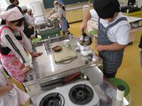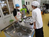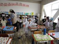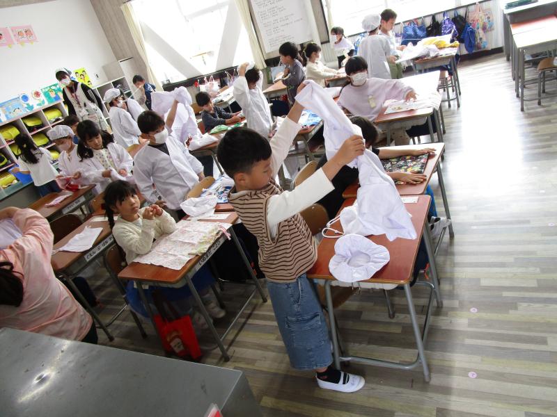 昨日練習したように、手洗い、白衣を着る・・・と頑張って準備を進めていきました。重い食器類もしっかり運びました。