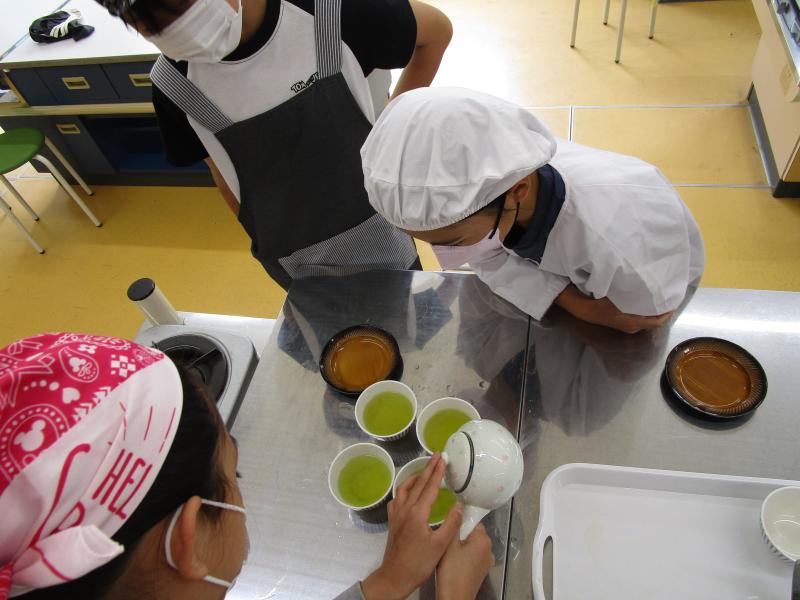 5年生が、お茶を入れる調理実習をしました。