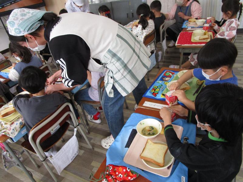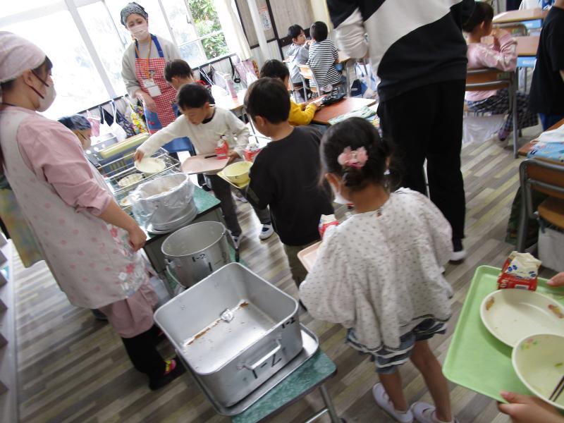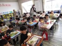 食べ始めると、満面の笑み。「めっちゃおいしい!」「こんなにおいしいの初めて!」と次々声が上がりました。耳が少々固いラスクも「おいしい!」とどんどん食べ進めていきました。とても良く食べる1年生・・・来週からも給食の時間が楽しみですね!