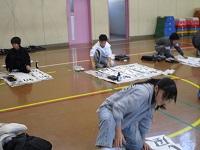 5年生が、体育館でキャンプファイヤーの練習をしていました。