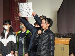 給食委員が、「給食の残量減」を目的として、各クラスを回り呼びかけをしてくれています。