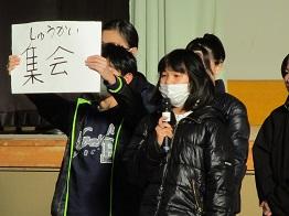 学校長からは、「今年の一文字」や「児童たちのよい行い」について話がありました。