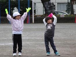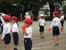 素晴らしい青空の下、校庭では運動会練習が盛んに行われていました。