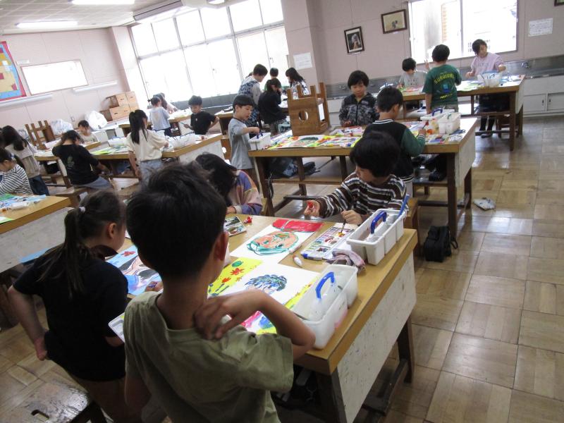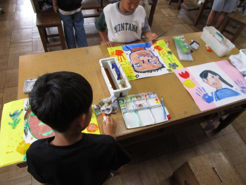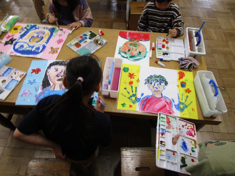 3年生の図工の時間に、自画像を描いていました。春らしい華やかな自画像です。授業参観に合わせて掲示するそうですので、保護者のみなさんは楽しみにして御来校ください。