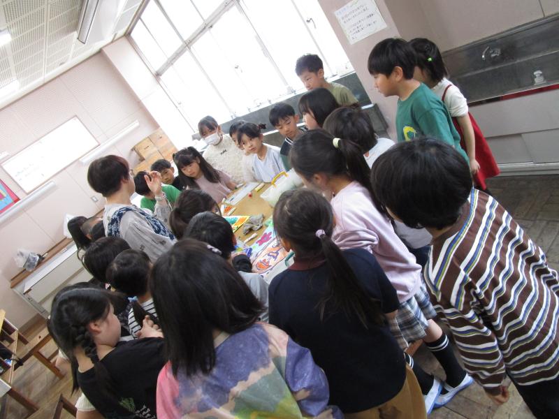 5年生の外国語の授業では、好きな食べ物を聞き合っていました。担任の先生と外国語専科の先生の英語でのやり取りをしっかり聞き取って、先生の好きな食べ物を知ることができました。