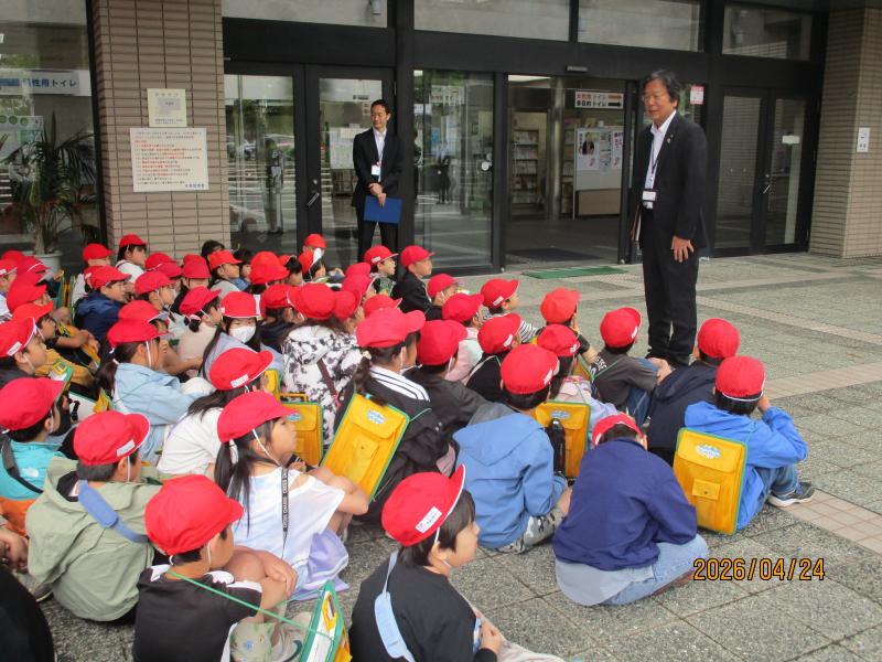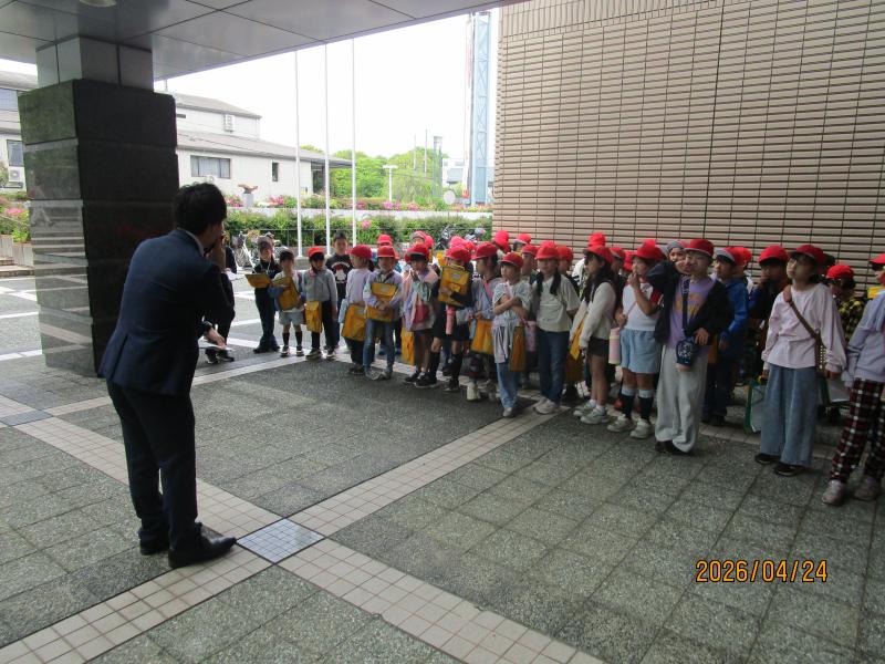 24日(金)、3年生は校外学習で市役所に行きました。暑すぎず、ちょうど良い天気の中、元気に学校を出発しました。