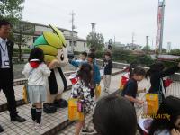 市役所に到着すると、教育長の方々やざまりんが出迎えてくれました。ざまりんは大人気です!