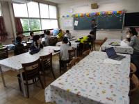 1年生は、明日から始まる給食に向けて、準備から片付けまでの給食練習をしました。明日からの給食を楽しみにわくわくしながら、一生懸命取り組みました。
