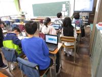 3年生の国語の時間には、話す聞くスキルを使って、「おーい、こっちだよ。」の音読をしていました。教室の中、畑の向こうに、笑いながら、水の中・・・など場面によって、声の大きさも言い方もいろいろです。