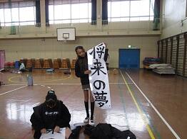 6年生が、体育館で書初めの練習をしていました。