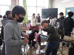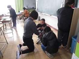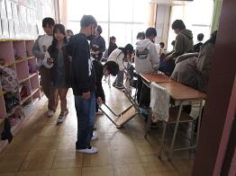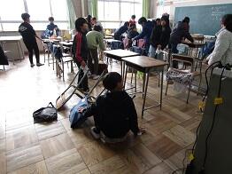多くの児童が、自分の机・椅子の脚まできれいに拭いています。