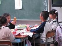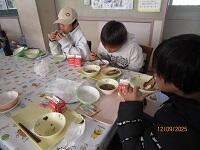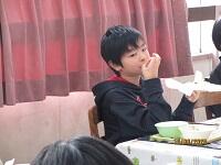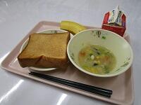メニューは、ソフトフランスパン、牛乳、豆腐のだんご汁、ナッツごぼうでした。豆腐の団子は、白玉粉に木綿豆腐を加えて、よく練って丸めたそうです。手作りのお団子です。