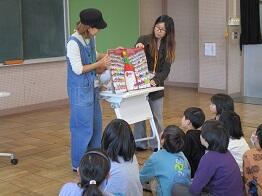 集まった児童たちは、目の前で繰り広げられる絵本の世界に釘付けです。