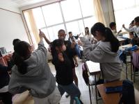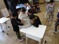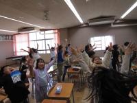 6年生が、2人組になってサインペンを中指ではさんで、歩き回ったり、他の2人組の下を通ったり。サインペンを落とさないよう息を合わせて活動していました。「相手のことを考えていた。」「協力することが大事。」と素敵な振り返りをしました。
