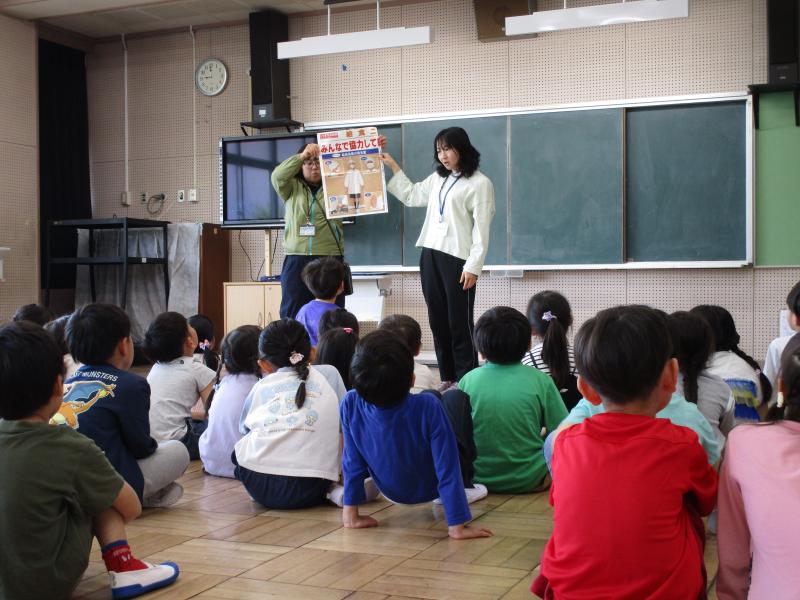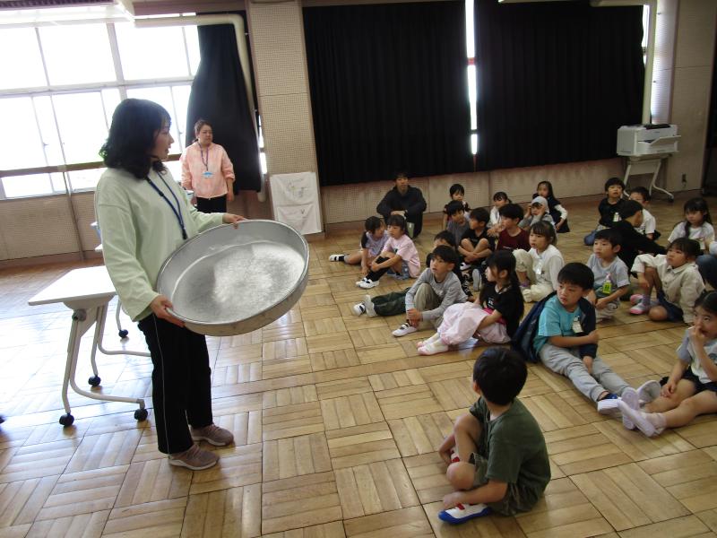 1年生は、もうすぐ待ちに待った給食が始まります。今日は、給食について栄養士の先生と一緒に勉強しました。