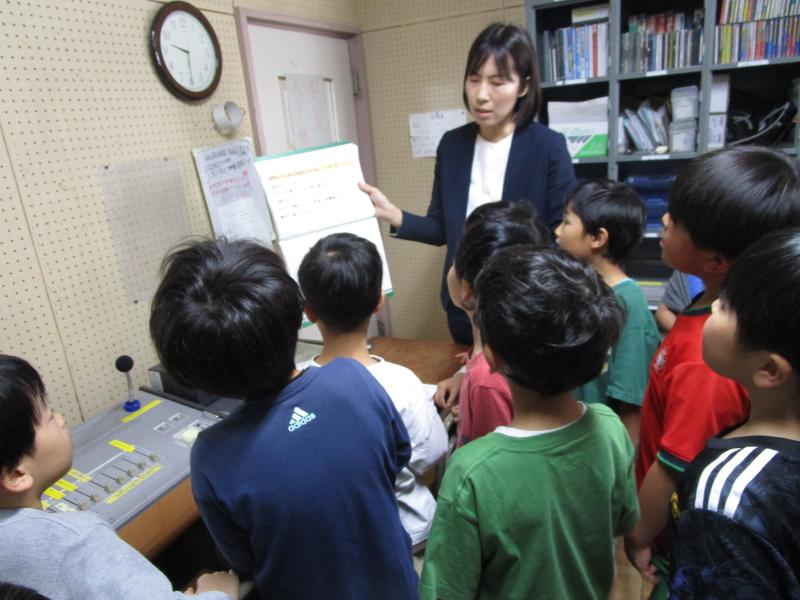 2年生は、1年生に学校内を案内する学校探検に向けて、準備をしていました。放送室に入り、どんなところか確認中です。下級生に教える立場のお兄さん・お姉さんになって張り切って頑張っている様子が伝わってきました。