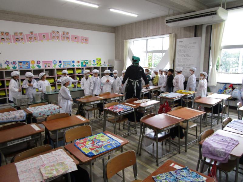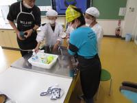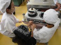 正解が「5人」と聞くと、「えーっ!」「やばい!」とびっくりです。カレーやシチューのルウは、1時間かけて手作りすること、30㎏のじゃがいもを切ることなど「えーっ!」と驚くことばかりです。栄養士さん、調理員さんの愛情たっぷりの給食が楽しみですね!