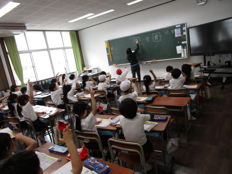 2年生は、漢字の一画一画を声に出しながら、書き順を確認していました。
