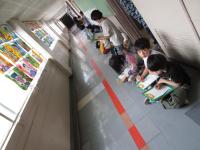 掃除も始まり、あちこちで一生懸命掃除をする姿がありました。昇降口では、靴箱を小さいほうきで丁寧に掃いたり、すのこを持ち上げて隅々まで掃いたりしてくれました。